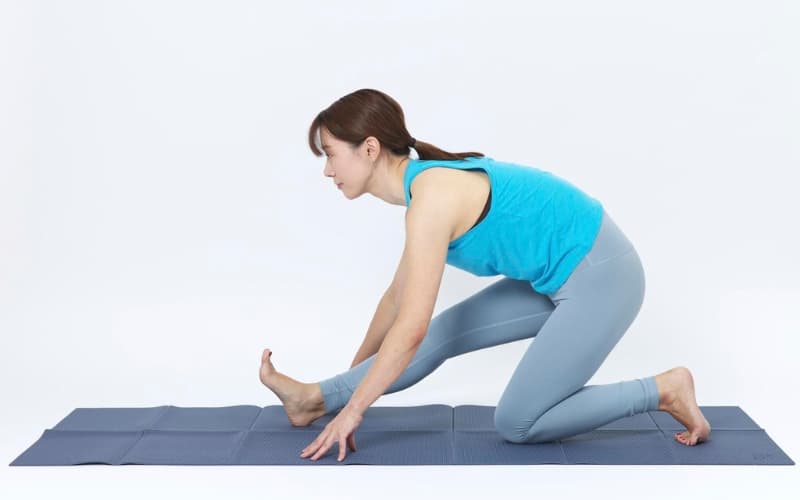 - Выпады с опорой на ногу. Встаньте на четвереньки, шагните правой ногой вперед, согнув ее в колене под прямым углом. Выдохните, отводя таз назад. Повторите 5-10 раз на каждую ногу.