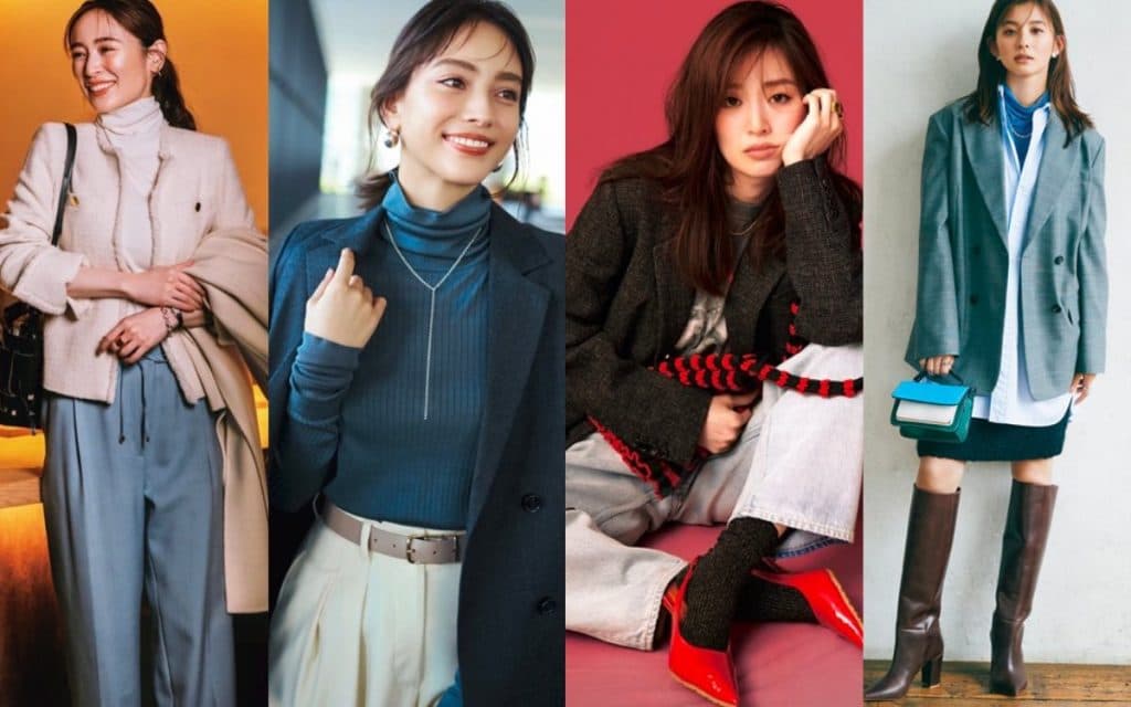 - Черный приталенный пиджак, водолазка и узкие брюки