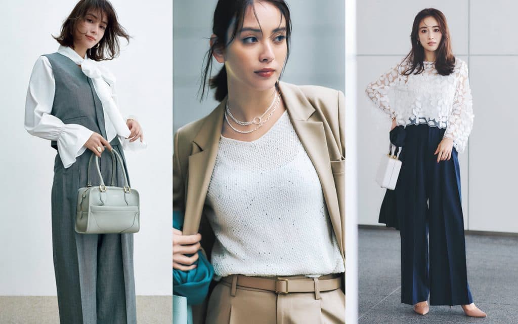 - Женственная блузка и брюки-палаццо: Легкая шифоновая или кружевная блузка в пастельных тонах, сочетаемая с расклешенными брюками-палаццо, добавит образу романтичности и изящества.